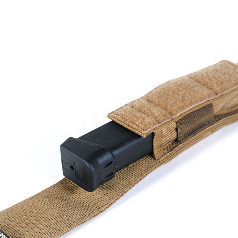 - Содержимое фиксируется с помощью эластичной поперечной стропы и текстильной «липучки». Глубина изделия такая, что позволяет удобно ухватиться за магазин и быстро его извлечь;