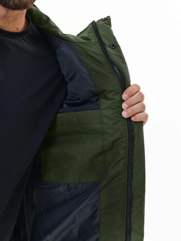- центральная застежка на двух-замковую молнию трактор Т8, закрытая утепленной ветрозащитной планкой на кнопках