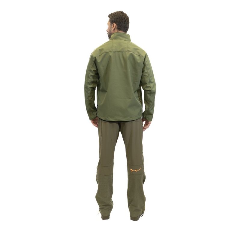 Практичный, мягкий на ощупь, многослойный материал SoftShell, обладает превосходными защитными функциями в условиях непогоды. Костюм способен выдержать довольно сильный дождь и мокрый снег, что подтверждают испытания.